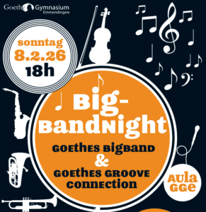 Herzlich willkommen zu Bigbandnight am Sonntag, 8.2., um 18h in der Aula! Dort zeigen die Ensembles, was sie sich in Ochsenhausen erarbeitet haben. Die Jahrgangsstufe 12 bewirtet. Eintritt frei, Spenden wären prima!