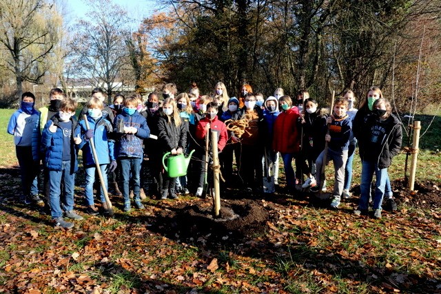 Die stolze Klasse 5c mit ihrem Klassenbäumchen (2021)