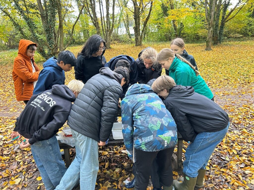 In der Woche vor den Herbstferien führten die 9. Klassen des Goethe-Gymnasiums einen spannenden Projekttag zur Gewässerökologie durch. Gemeinsam mit dem Ökomobil bzw. Fischmobil machten sich die Schülerinnen und Schüler auf den Weg zum Brettenbach, um dort die Wasserqualität fachgerecht zu untersuchen.