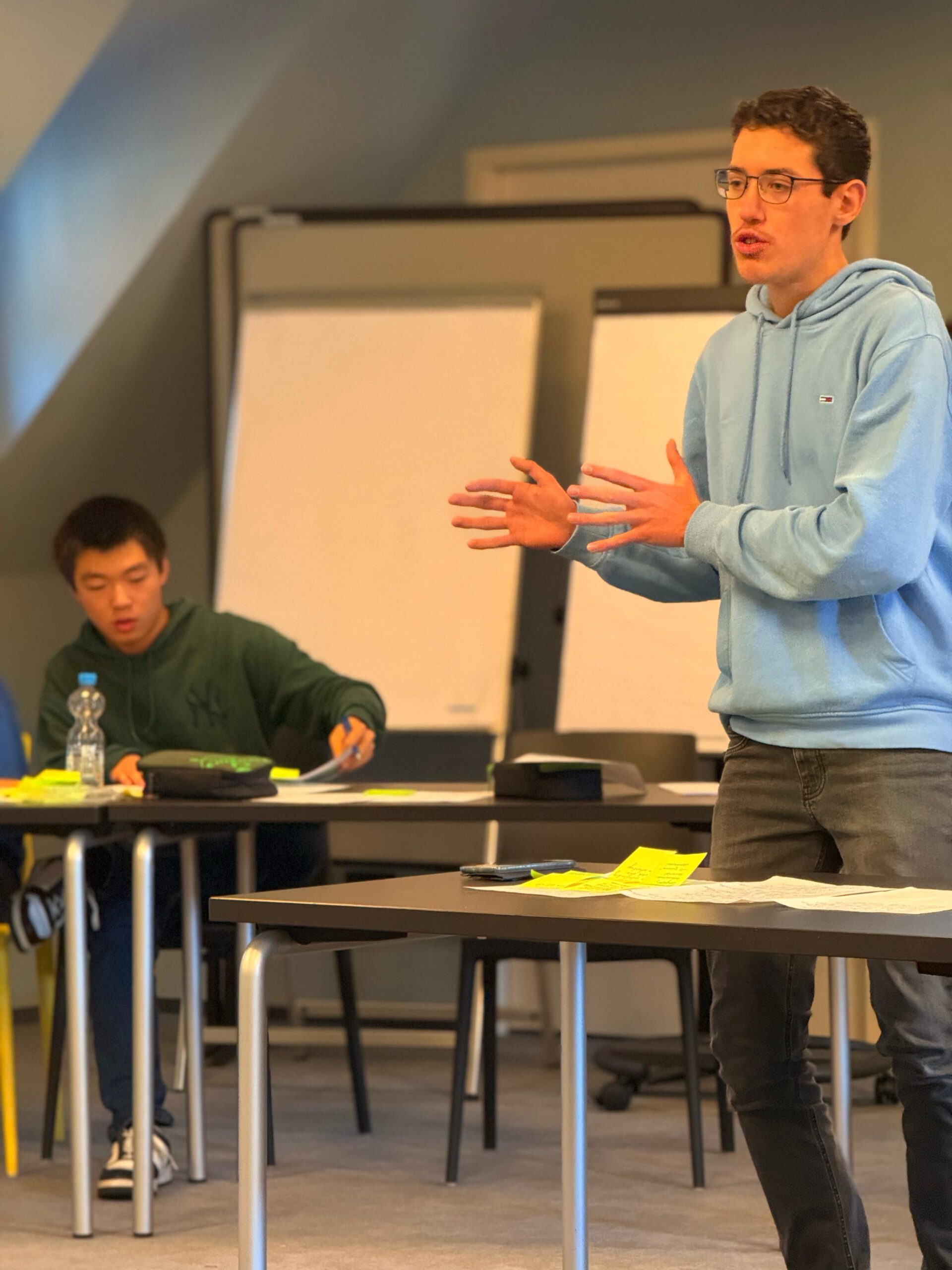 Ein besonderer Höhepunkt war der Besuch externer Gäste: Vertreter des Landratsamts, der Stadt Emmendingen sowie Klimaconnect und der Klimafit-Initiative begleiteten das Planspiel mit ihrem Fachwissen und lobten das hohe Maß an Kreativität und Ernsthaftigkeit der Jugendlichen.