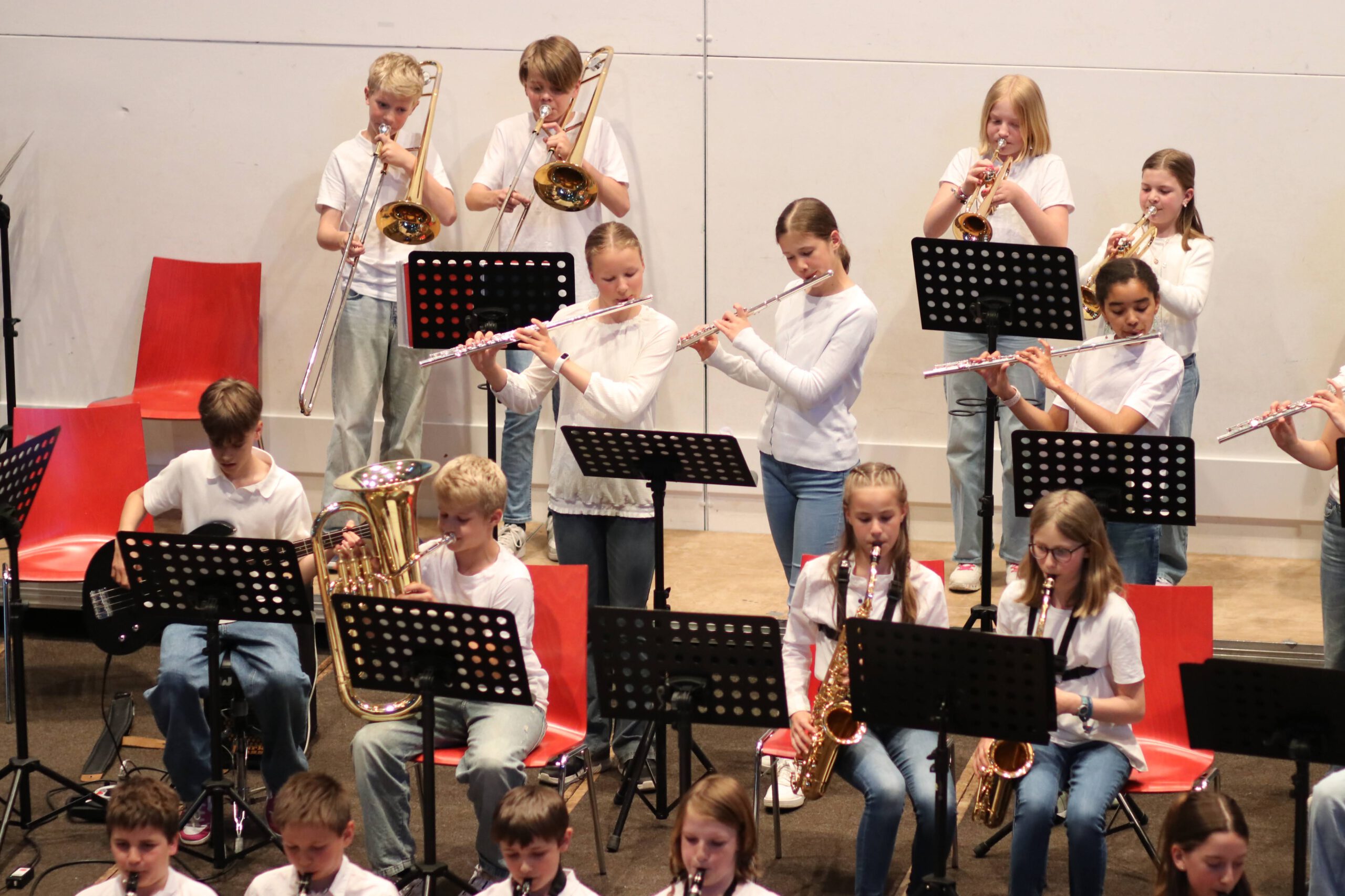 Seit 18 Jahren gibt es die Kooperation zwischen der Musikschule Emmendingen und dem Goethe-Gymnasium. Beim 18. Zusammenspiel der Bläserklassen mit der Musikschule Emmendingen am 23.05.2025 zeigte sich das breite Repertoire der Bläserklassen! Eine sehr gelungene Zusammenarbeit, bei der so viele ihr musikalisches Können präsentieren konnten!