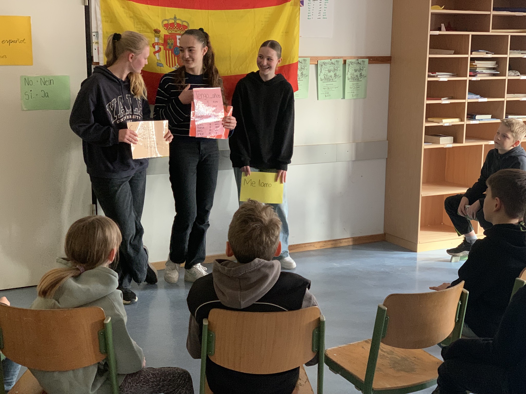 Vom 13. bis 21. März besuchten uns unsere amigos aus Valladolid drei Stunden nordwestlich von Madrid hier am Goethe-Gymnasium in Emmendingen. Auf dem Programm standen neben Einblicken in verschiedene Unterrichtsklassen u.a. ein Besuch der Emmendinger Altstadt mit dem Freitagsmarkt, eine entspannte Wanderung zur Hochburg und ein abenteuerlicher Abstieg in das Besucherbergwerk auf dem Schauinsland. Zwei Highlights für unsere Besucher aus Spanien waren sicherlich auch der Europapark am Wochenende sowie das Eintauchen in den Schwarzwald mit den Triberger Wasserfällen. Daneben war natürlich auch genügend Zeit für Freizeit und gegenseitiges Kennenlernen, wobei manche kulturellen Unterschiede für Abwechslung sorgten, besonders die unterschiedlichen Essensgewohnheiten und Tagesabläufe. Nach einem letzten gemeinsamen Frühstück mit spanischen und deutschen Spielen, Tanz und Musik fiel der Abschied allen schwer, aber wenigstens wusste man, dass fünf Wochen später der Gegenbesuch noch anstehen würde.